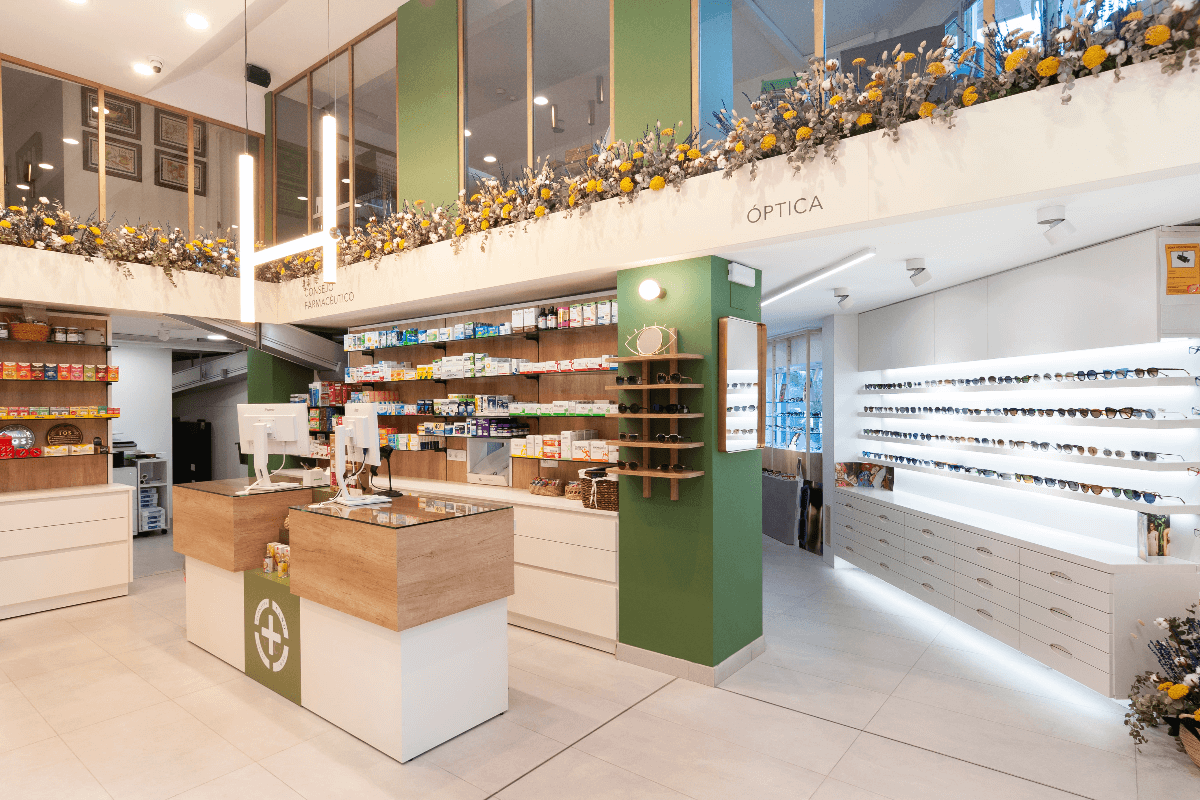 Como especialistas en interiorismo para el sector sanitario, es frecuente que algunos de los proyectos de óptica que realizan desde STUDIOLYKE estén integrados en una farmacia.