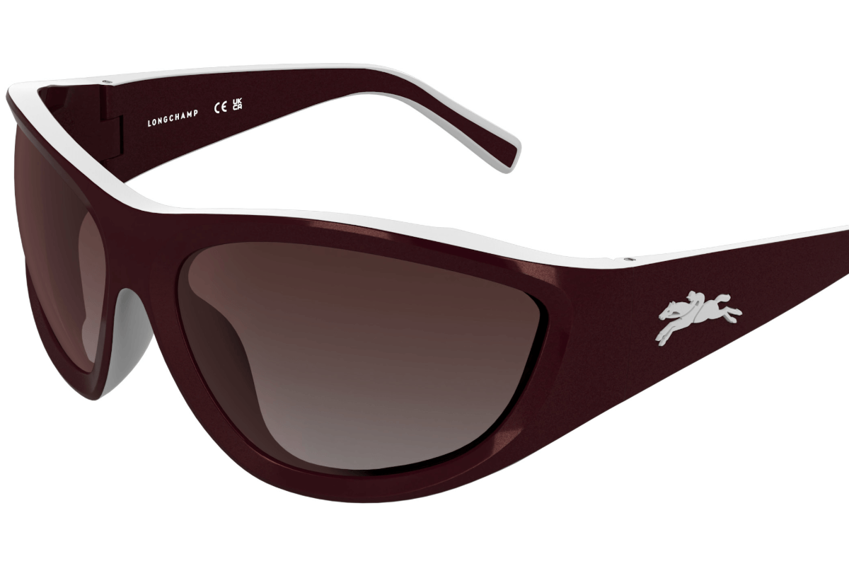 Fabricadas en resina de origen vegetal, prueba del compromiso de Longchamp con la sostenibilidad, estas magníficas gafas de sol presentan una atrevida forma de máscara que refleja el estilo vanguardista de la Maison. Los perfiles en color blanco aportan carácter a su diseño distintivo y el icónico emblema del caballo en las varillas las convierte en un auténtico símbolo de estilo. Este modelo, ya está disponible y a la venta en cuatro tonalidades metálicas, burdeos, rosa, amarillo y en la campaña publicitaria otoño-invierno 2025, también está disponible en el clásico y elegante color negro.