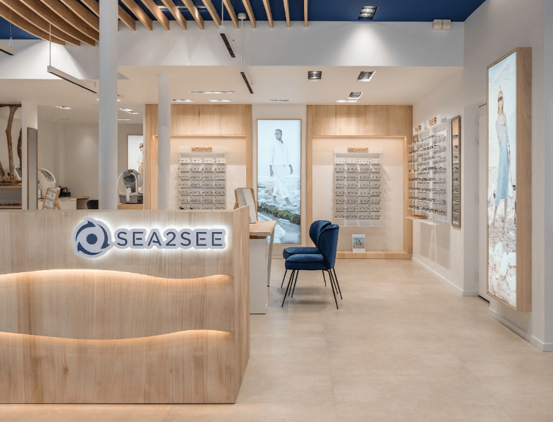Las colecciones completas de gafas de sol y ópticas de Sea2see se exhiben en la tienda, junto con una gama de servicios ópticos profesionales de alta calidad. Estos incluyen exámenes de la vista completos, lentes premium de la más alta calidad —a precios competitivos para adaptarse a las necesidades de todos los clientes—, certificados con el sello OFG (Origine France Garantie), suministrados por una filial de Essilor, y suministro de lentes de contacto.